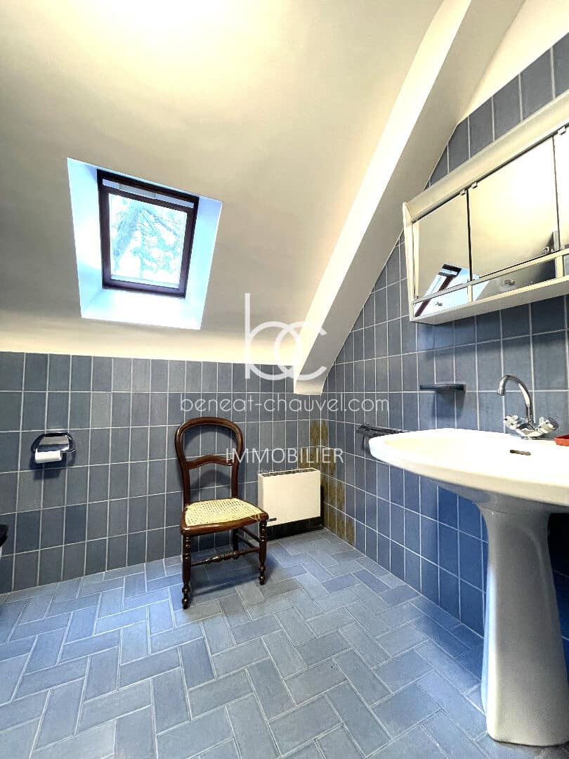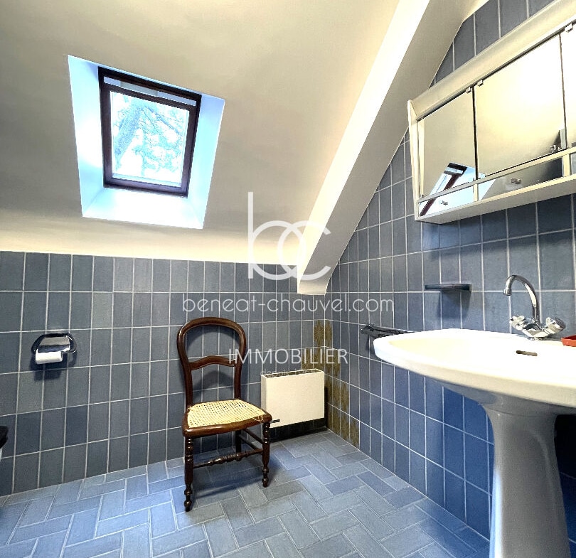 A l’étage : un dégagement dessert 3 chambres avec placard dont une avec un grenier, une salle d’eau avec wc.