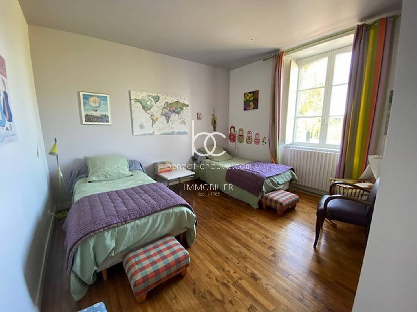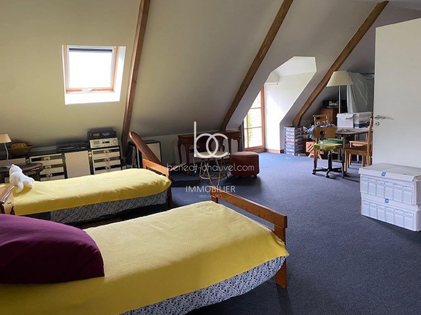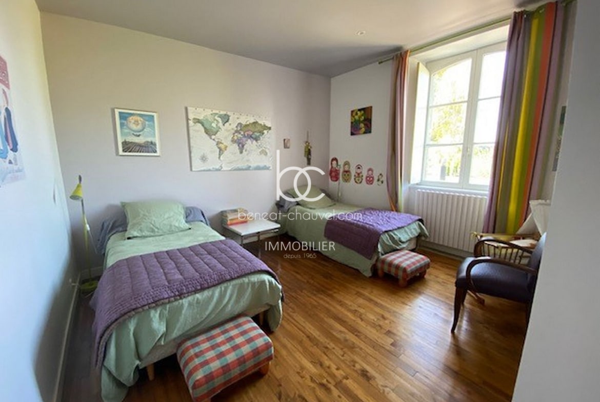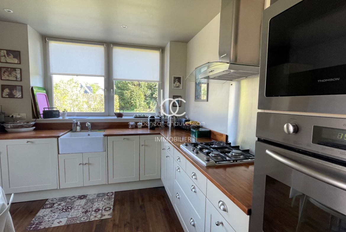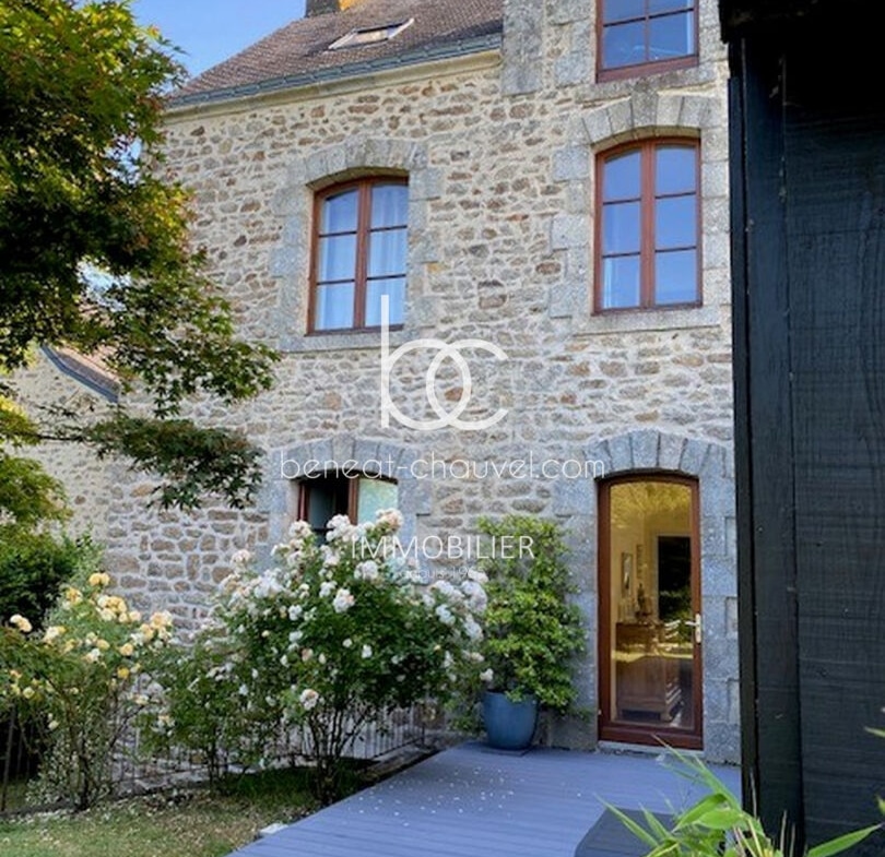 Campagne de Plescop, 10 minutes de Vannes, Magnifique propriété de caractère comprenant : Hall, séjour-salon avec poêle à bois, bureau, cuisine équipée, salle à manger, une très belle chambre avec salle de bains (baignoire et douche), wc. Etage : 4 belles chambres dont une avec salle d’eau et wc, salle d’eau, wc. Combles : Très belle mansarde aménagée (salle de sport, chambre…). Sous-sol : Cave, chaufferie, buanderie cellier, atelier.