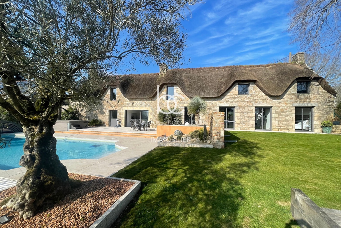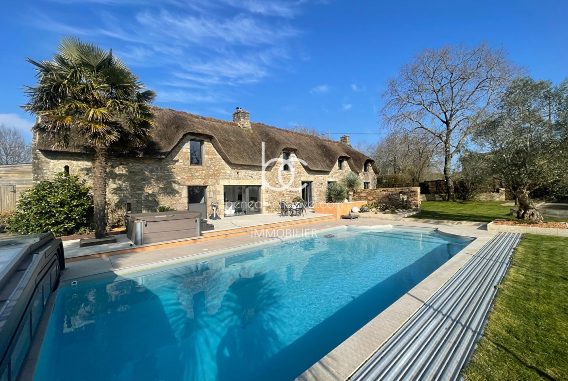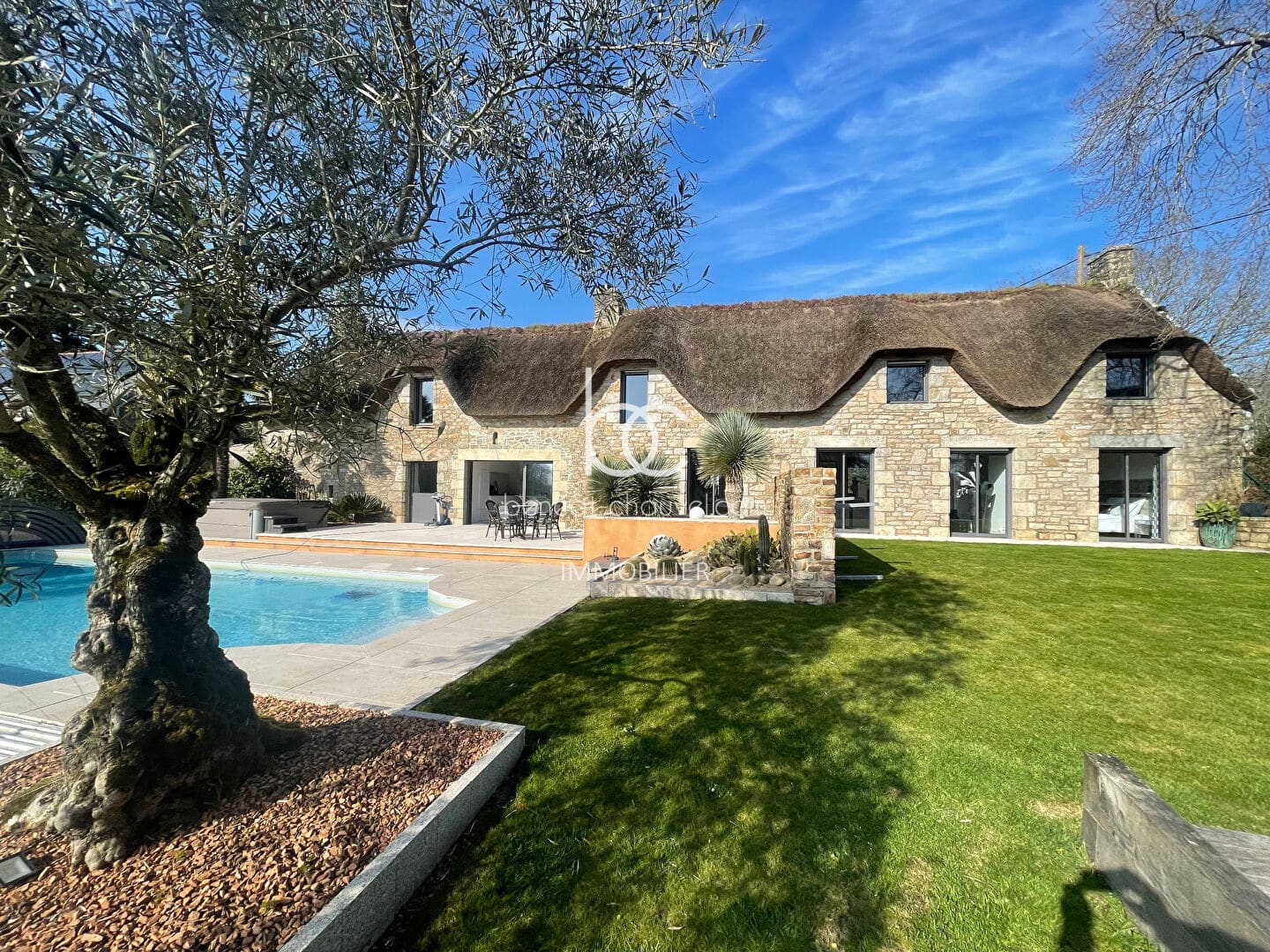 Privilège et rareté pour cette authentique chaumière nichée dans un cadre bucolique et entièrement rénovée sur son terrain clos et paysager avec une vue dégagée