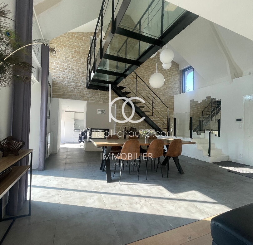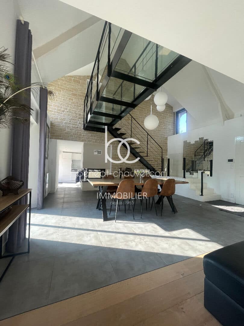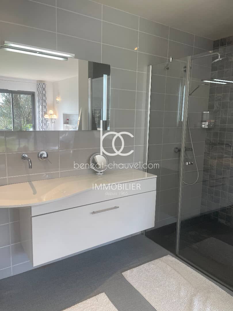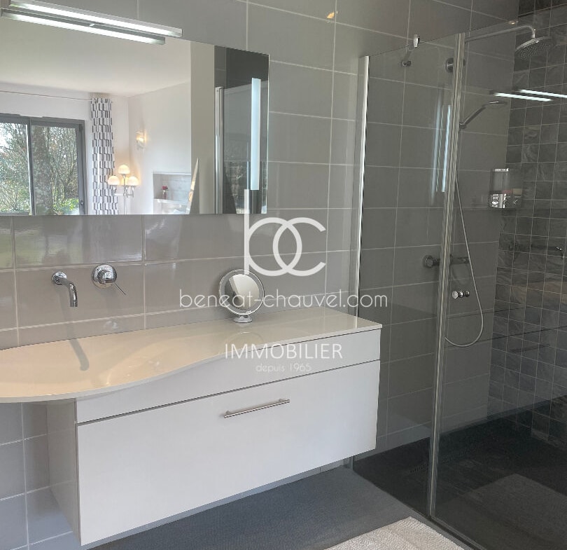 Dès l’entrée vous y trouverez un vaste séjour-salon baigné de lumière avec une très belle hauteur sous plafond, cuisine indépendante aménagée équipée avec son accès direct sur la terrasse, suite parentale avec dressing et douche à l’italienne, cellier, buanderie, garage.