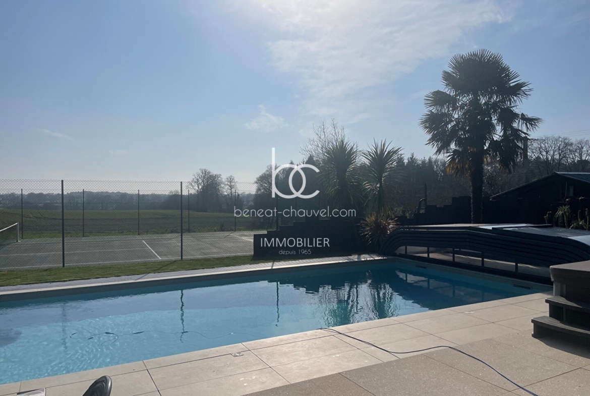 Cette maison familiale promet de très bons moments en extérieur grâce à sa piscine chauffée 5×10, son jacuzzi, son terrain de tennis et de pétanque.